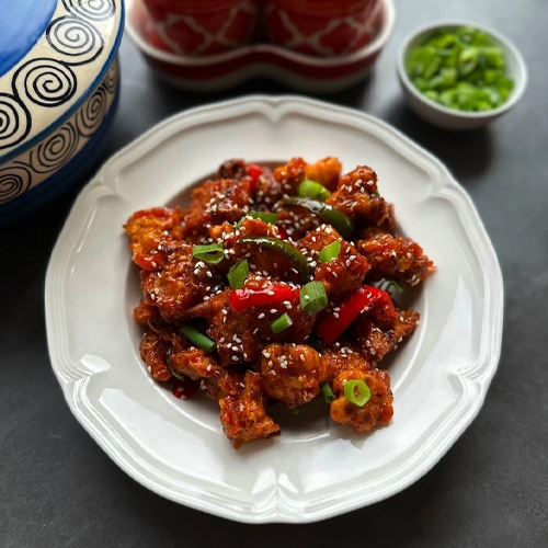 Cauliflower florets dipped in capsicum giving a saucy texture