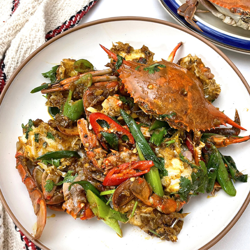 Shreads of prawn pan Lossed with Chinese sauce crab sauteed in spicy Sritankan style sauce
