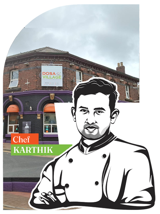 The Flavors of South India and Sri Lanka are Proudly Brought to you by Celebrity Chef Karthik. His Mastery Of Authentic Flavor Has Been the Driving Force Behind Dosa Village’s Success. Starting With the Opening of the First Restaurant in Coventry – 2013, His Vibrant yet Traditional Dishes Quickly Gained a Loyal Following, Leading to the Opening of a Second Location in Shirley – 2015, and a Third in Rugby – 2017.